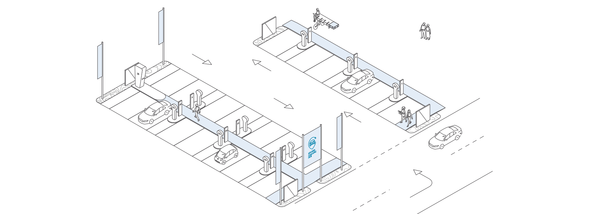Sei postazioni di ricarica per e-bike e device portatili, hotspot Wi-Fi integrato.